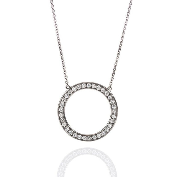 Visit product page →Part of Circle of Life Fine Jewelry Collection. A beautiful, delicate circle of diamonds, "Modesta" is the larger of our two circle Necklaces. Created with gorgeous, ethically sourced diamonds, made in New York City.